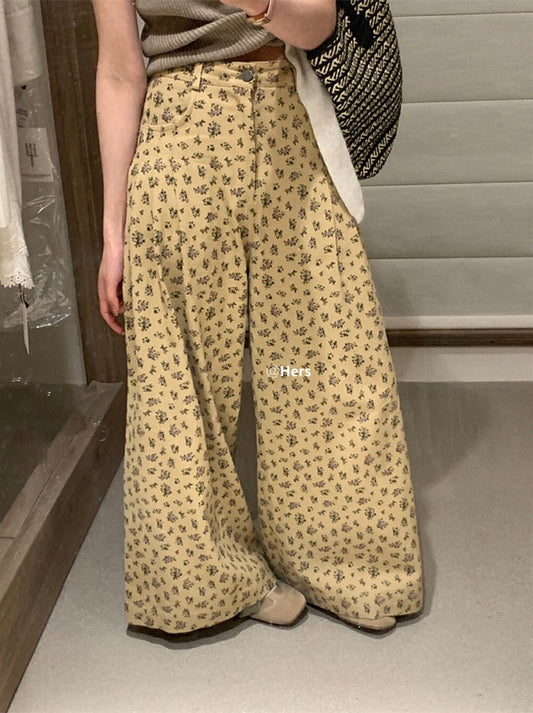Giảm giáHERS> 碎花打摺闊腿牛仔褲 20307#