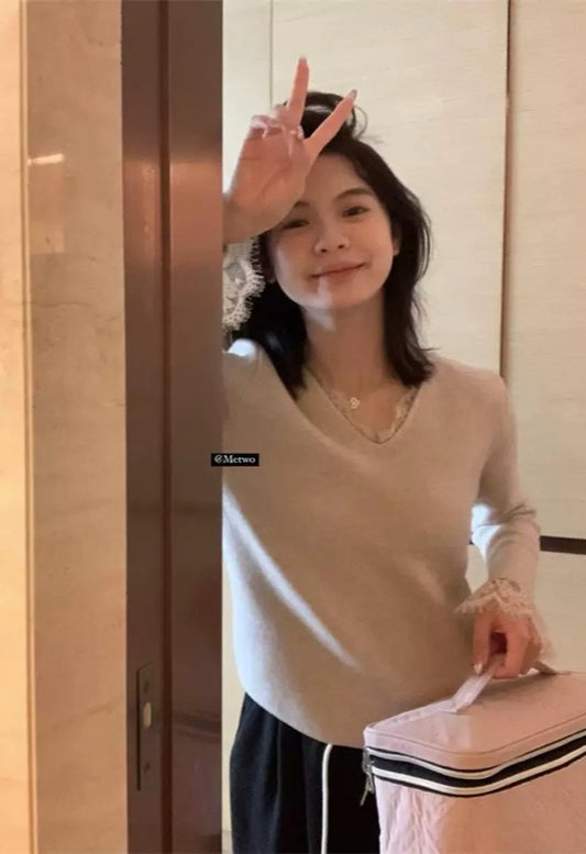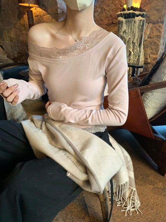 Đã bán hếtMETWO> 加厚一體絨蕾絲羊絨上衣 2254#