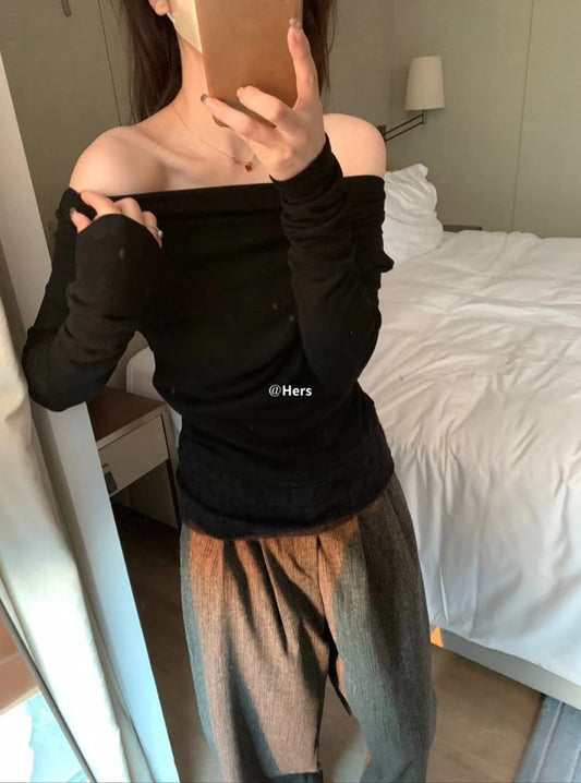 Đã bán hếtMETWO> 抓毛蕾絲一字肩 #2129#