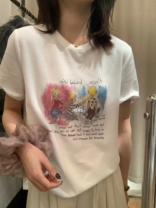 Giảm giáHERS> 小眾繪畫白T 20741#