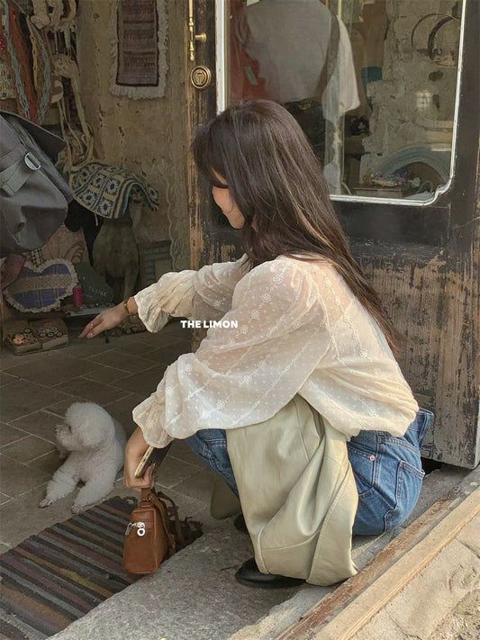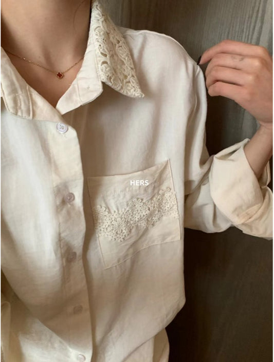 Giảm giáHERS> 蕾絲提花長版襯衫 20531#