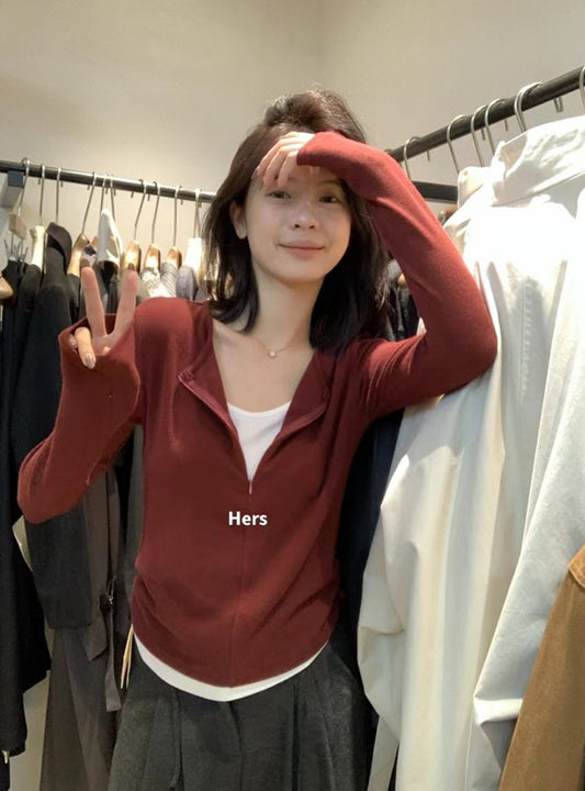 Giảm giáHERS> 短/長/連帽 假兩件扭摺拉鏈T#10121#