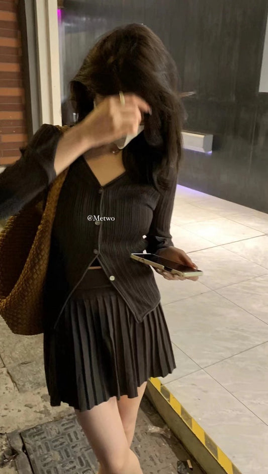 Giảm giáMETWO>針織百褶裙休閒套裝 TX8120#