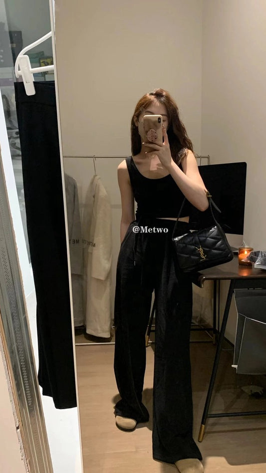 Giảm giáHERS>混紗吊帶開衩褲 9172#