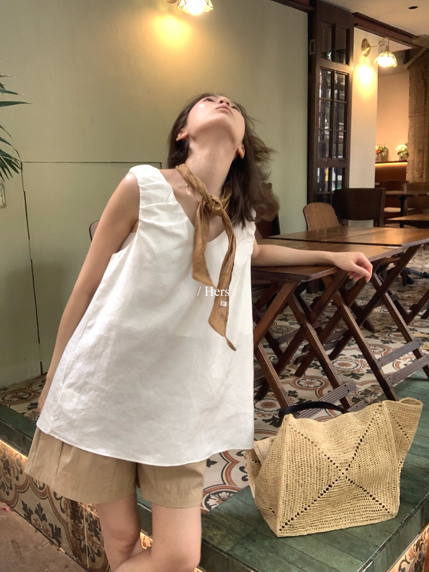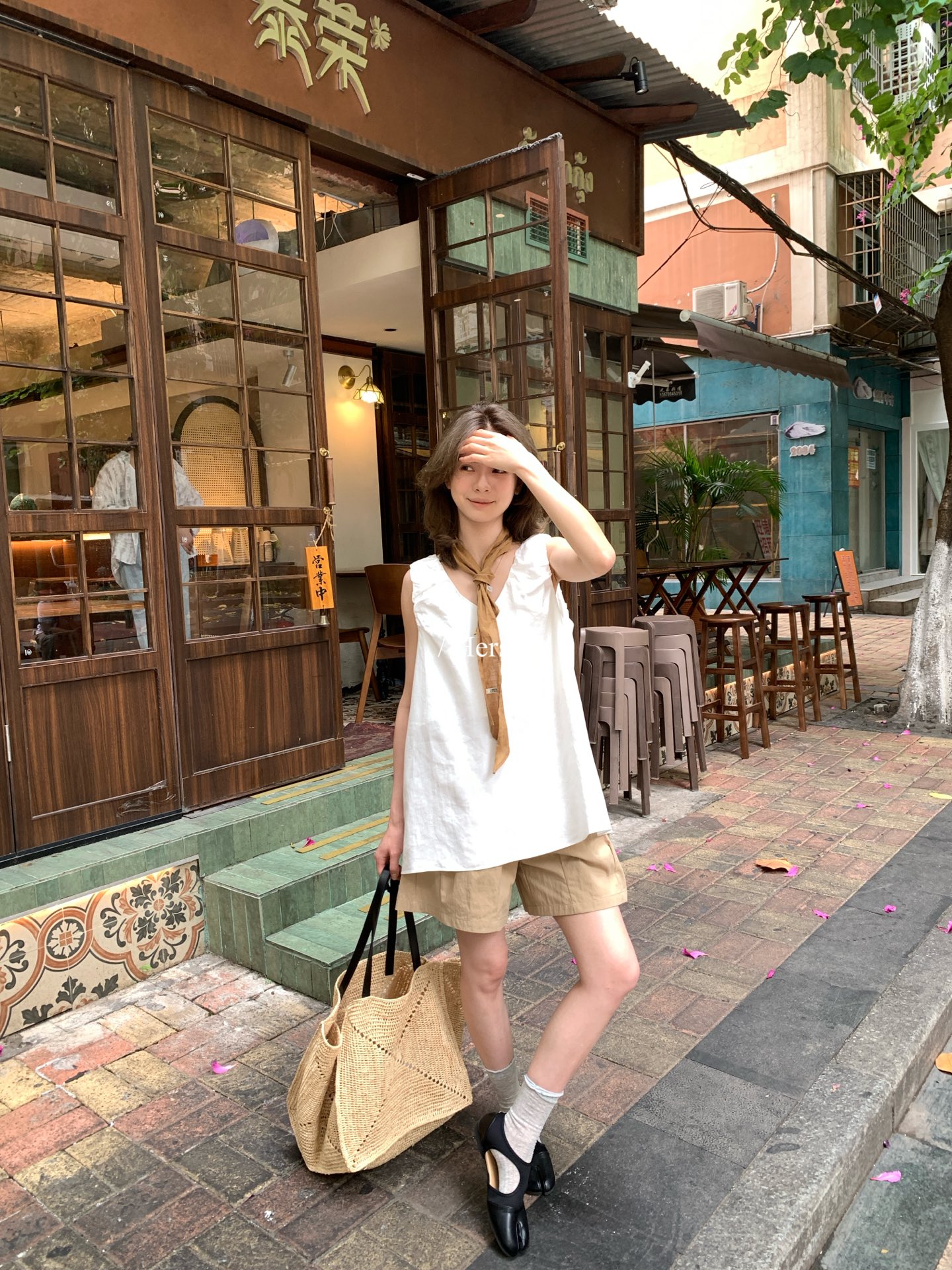 Hers - 捏摺中長款無袖背心&卡其短褲 80422#