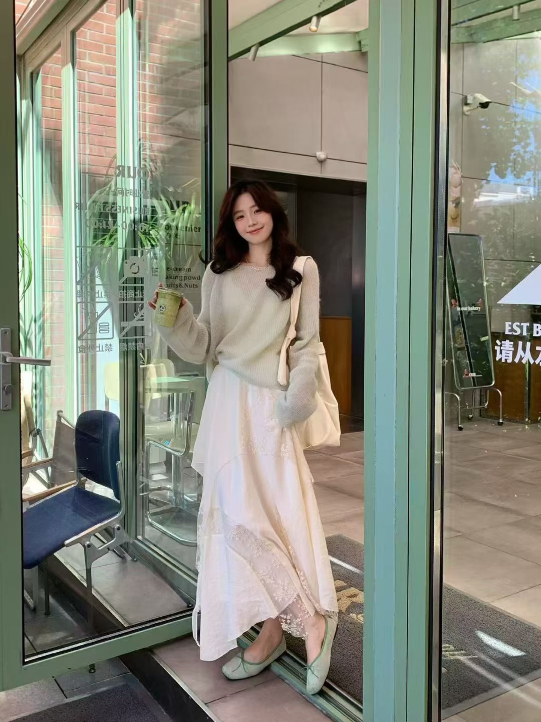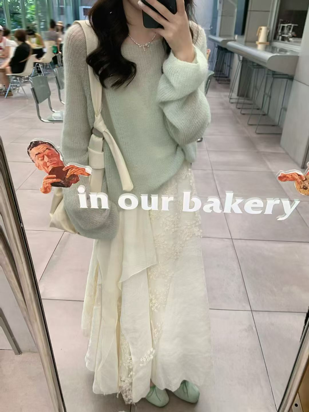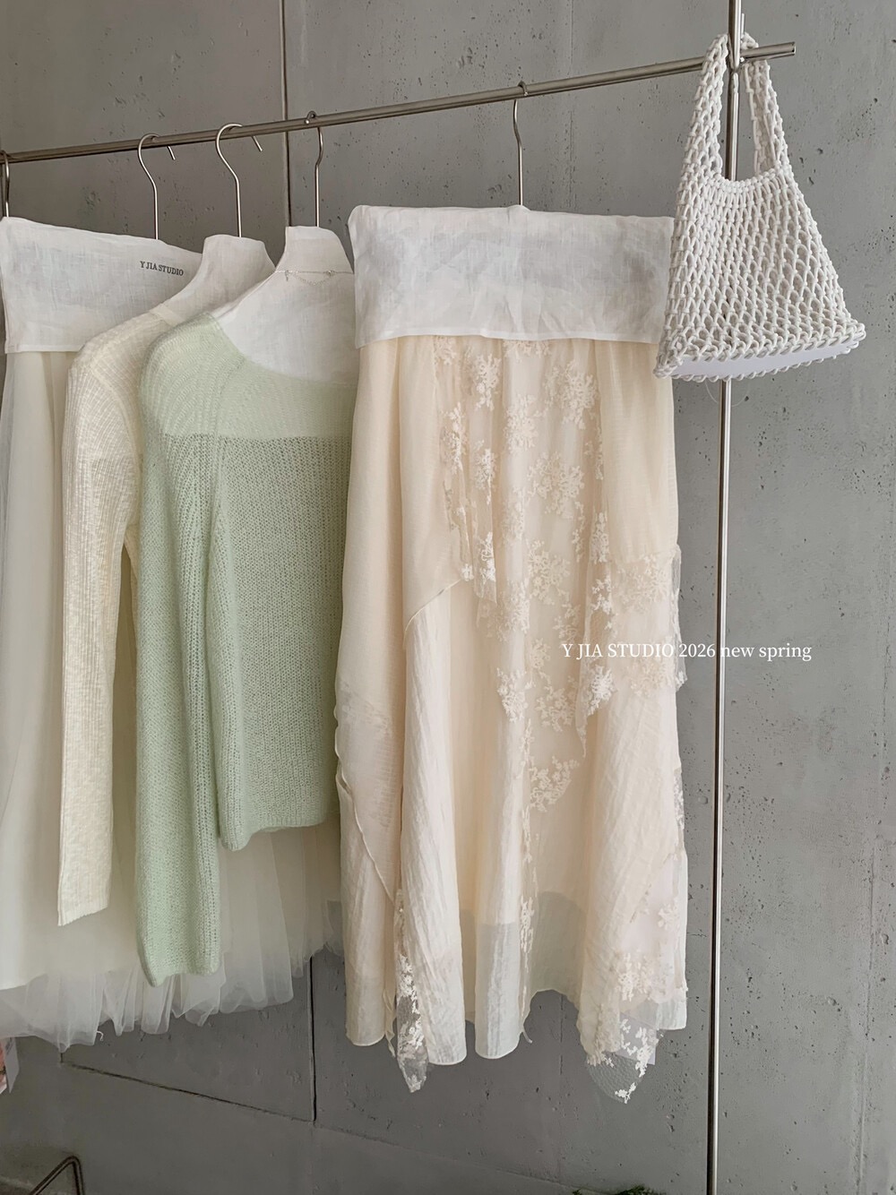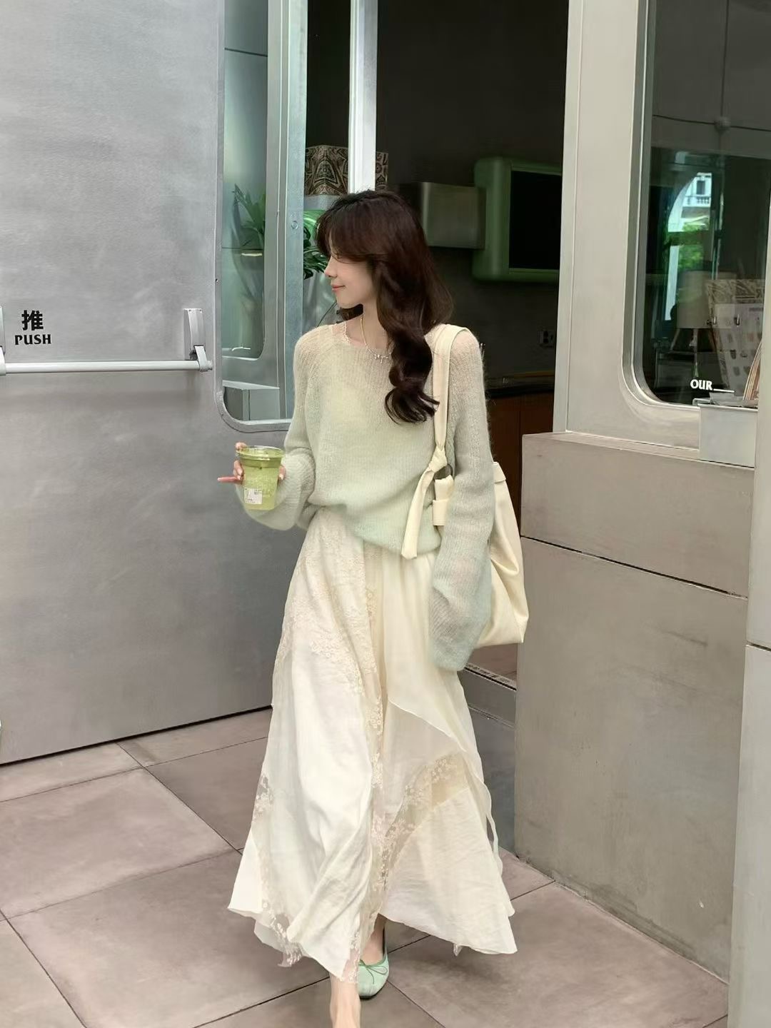 YJ - 薄荷綠柔針織蕾絲不規則半裙套裝 8806#