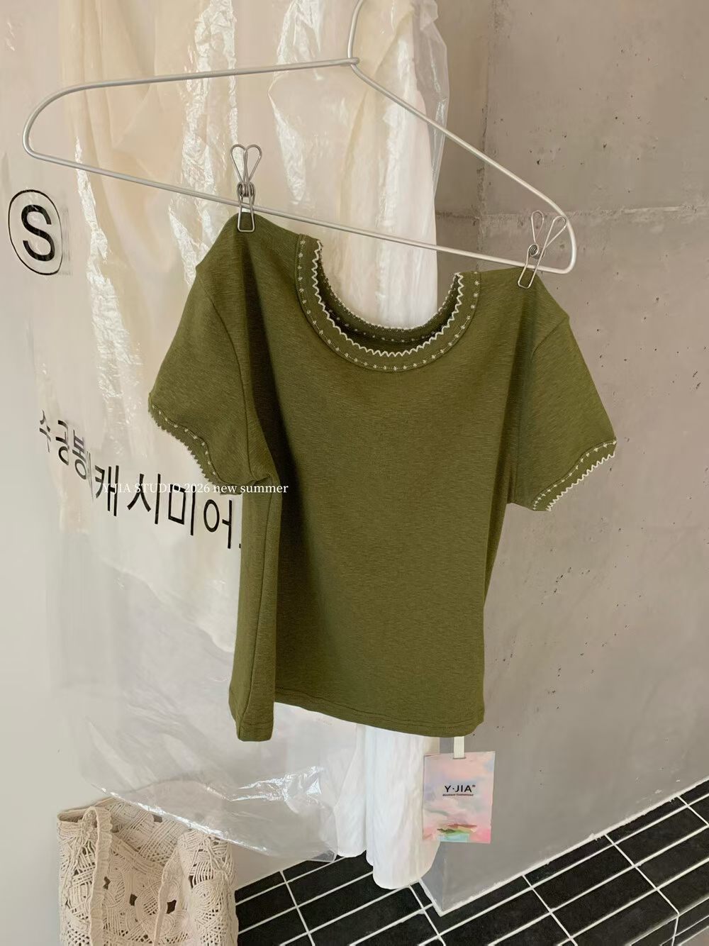 YJ - 設計感短T 立體扭摺彎刀休閒褲套裝 8895#