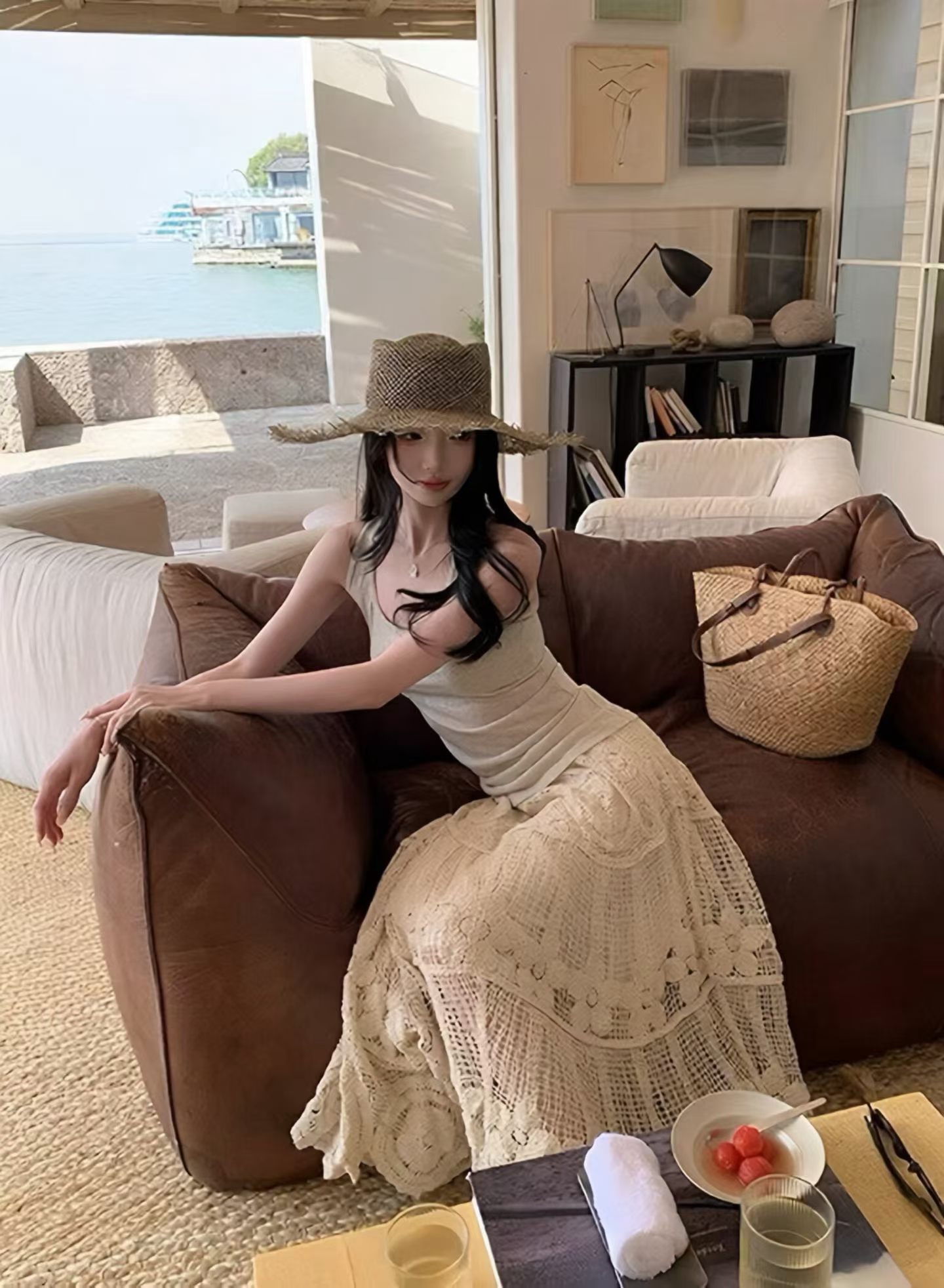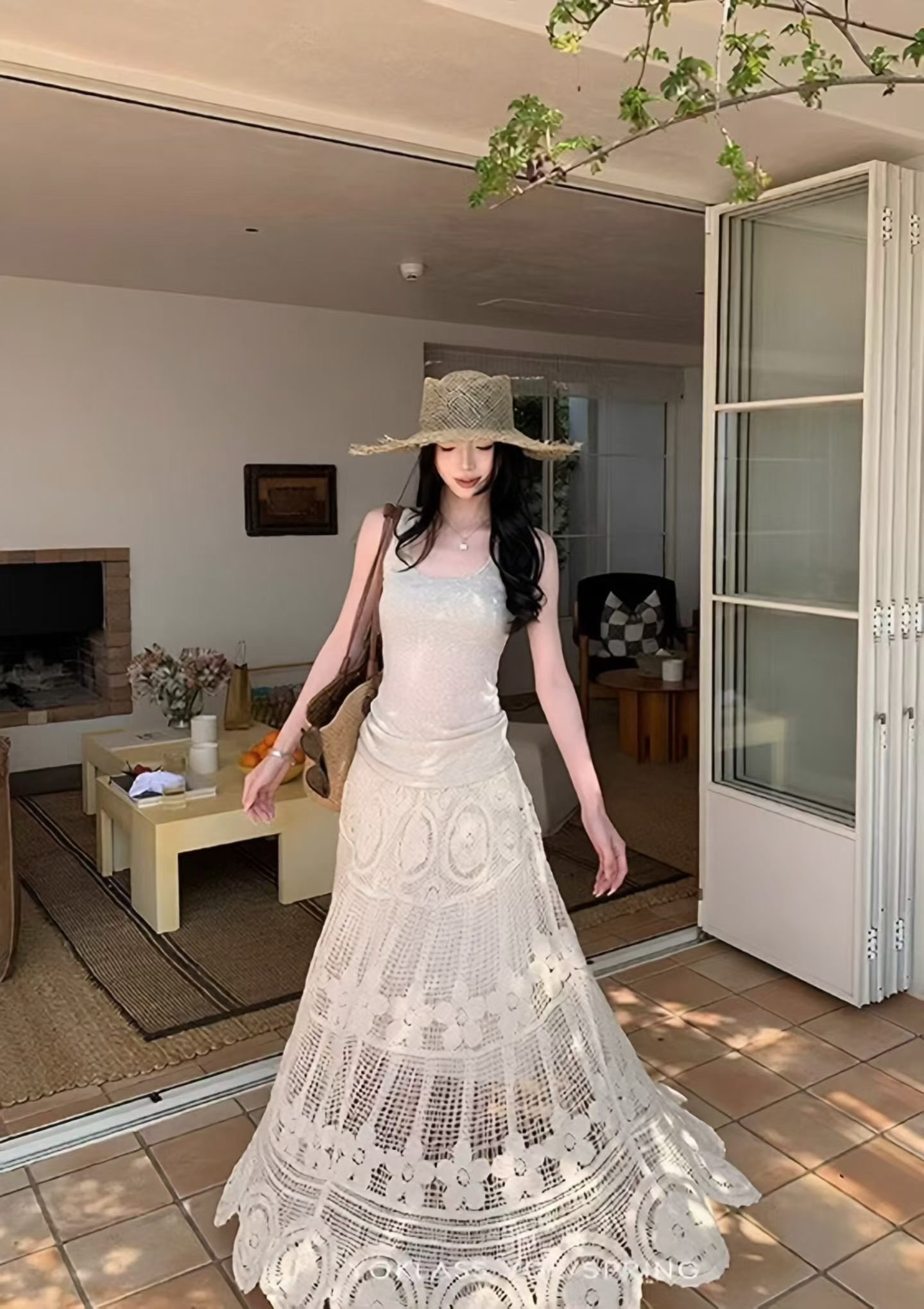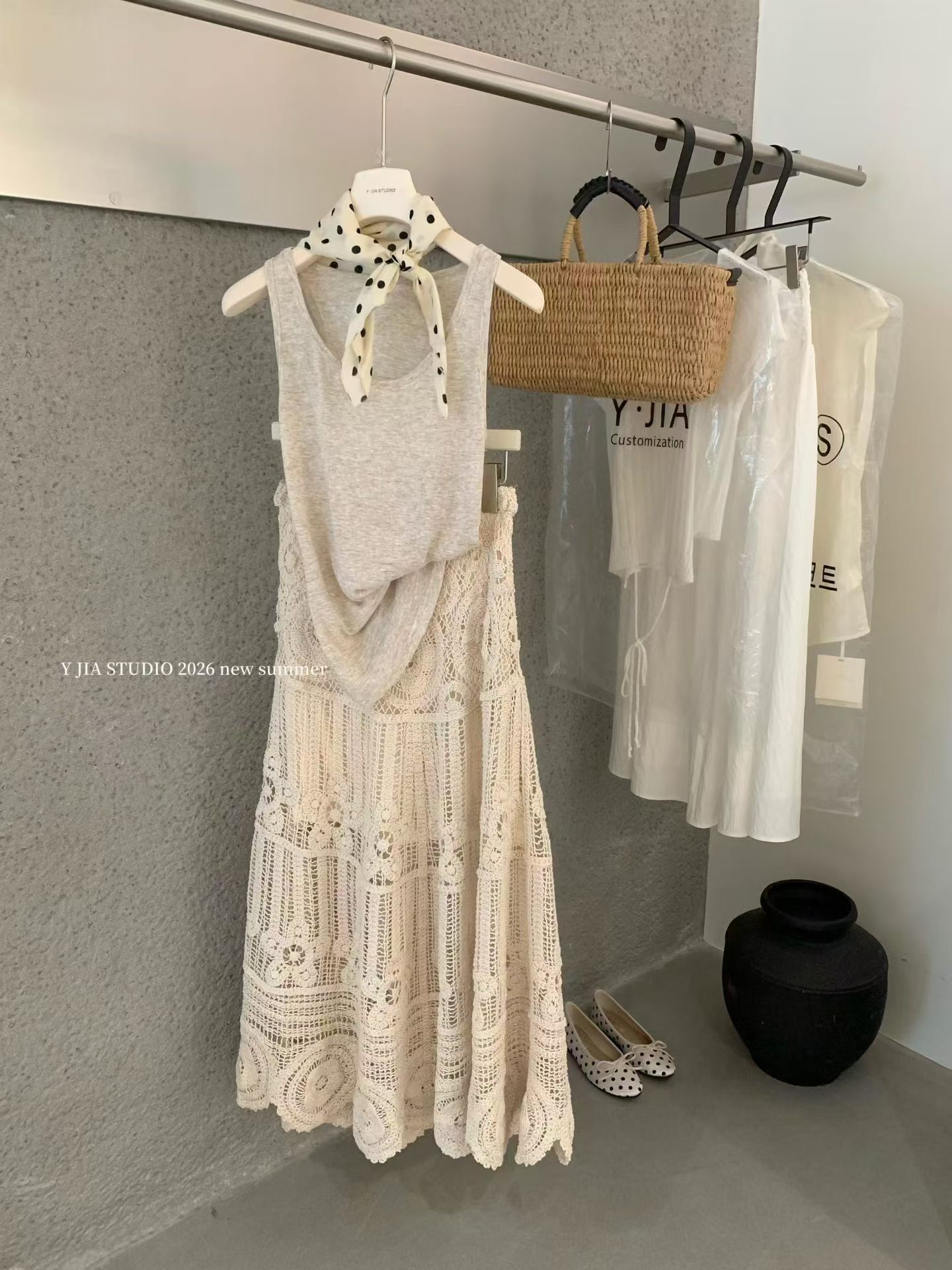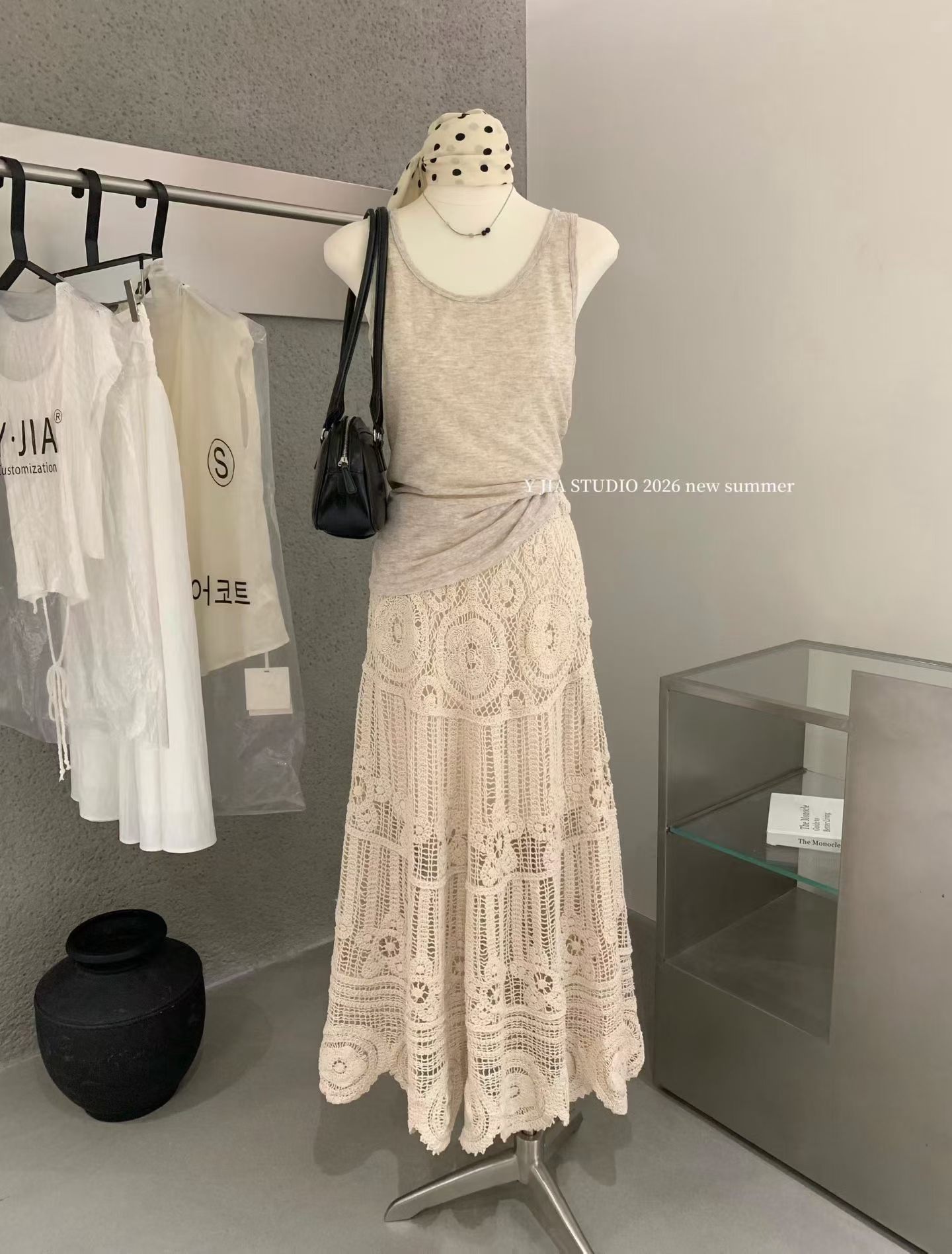 YJ - 雪花背心 立體勾花簍空半裙 2230#